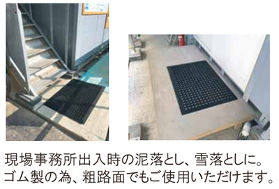現場事務所の出入口に最適![]() ■特長 ●ゴム製による強いグリップ ●四面スロープで段差解消 ![]() ![]() ■仕様