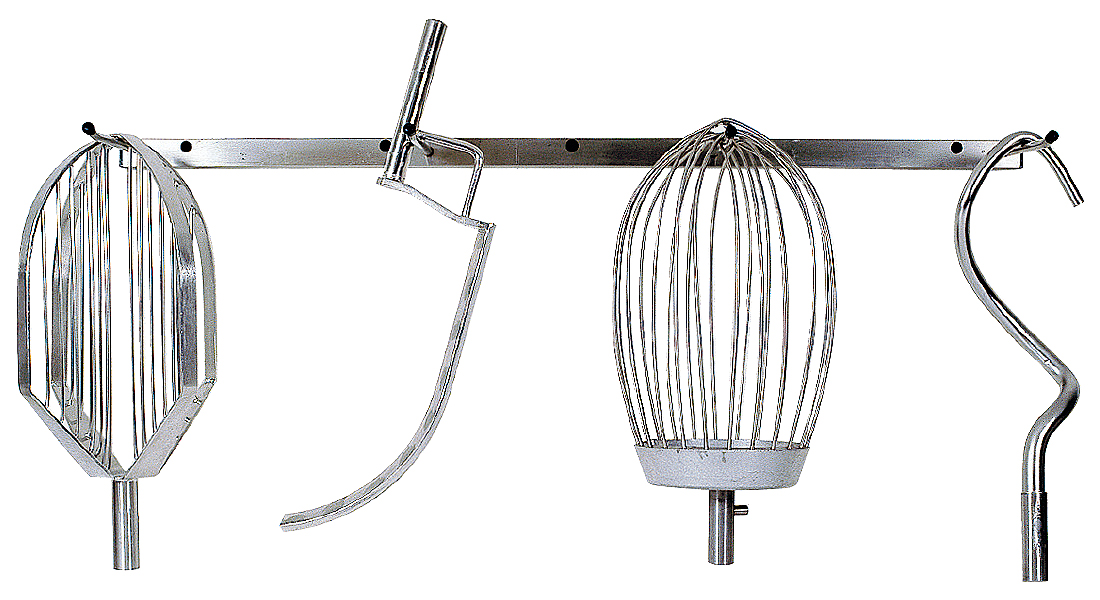 | ■特長 ●防塵·防水性規格 IP44 直径1.0mm以上の固体が侵入する隙間が無く、いかなる方向からの水の飛沫による影響を完全にシャットアウトします。 ●シンブルで使いやすい操作パネル 時間とスピードをセットし、運転ボタン、停止ボタンを押すだけのシンプルな操作パネルです。 ![]() ●マグネット式 安全ガード·飛散防止カバー 安全ガード·飛散防止カバーが付属します。マグネット式のため、ワンタッチで取付けが可能です。堅牢なポリカーボネート製、食洗器にも対応しています。 ![]() ●ステンレス製ツール ツールは高強度で衛生的なステンレス製です。特にフックはパン生地を下向きに練り込む特殊形状になっています。 ●メンテナンスフリー 内部はギア構造ではなく、グリスアップは不要です。プーリーベルト駆動の為、耐久性に優れています。 ●ハイパワーモーター よりパワフルな三相モーターを使用しています。重たい生地でも多量のミキシングが可能です。 ●生地の自動搔き落とし スクレーパーを使えば、プラネタリ·ミキシングと同時に生地を通き落とすことができ、作業時間を短縮できます。 ●衛生的なステンレスボディ 本体表面にネジが無く、クリーニングが簡単です。バクテリアの繁殖を防ぎ衛生的です。 脚を高くし、本体の下を掃除しやすくしています。また、脚はそれぞれ高さ調整が可能で本体を水平に保つことができます。 ■標準付属品 ![]() ![]() ■テクニカルデータ