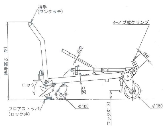 | 油圧式マンホール蓋垂直昇降リフターとは、油圧シリンダー能力1tの力によってマンホールの蓋を簡単に開閉し、前後3輪のキャスターでそのままマンホールの蓋を楽々移動させることができる機械です。 マンホールの蓋のハンガー部分にアジャスト式のフックを引っ掛けて、本体ジャッキレバーを操作すると、油圧シリンダーが伸び、テコの原理で直径800mmまでのマンホールの蓋を楽々開けることができる仕組みになっています。 ![]() 商品番号 M2916HMV-1T 機械を使わずに作業した場合は人が屈んで作業することになり、作業する方の腰への負担も大きく、開けるマンホールの数が多いと腰を痛めてしまう可能性もありました。 また、人力でマンホールの蓋を移動させる作業には、うっかり指を挟んだり落としてしまうリスクもあり危険です。 しかし、マンホール蓋昇降リフターを利用すれば、人が屈んだり力をかけることなく簡単にマンホールの蓋を開けて移動させることができるため、作業員への身体的負担を軽減でき、作業効率も上がって、マンホールの蓋を移動する際の安全性も向上させることができます。 開けるマンホールの数が多いときでも作業が楽になり「あって良かった!」と思える機械です。 公道のみならず、マンションや学校の敷地内、工場などの施設内にもマンホールはあります。 当社では販売の他に3日間からのレンタルもしておりますので、恒常的に使用されるものについてはご購入を、たまにお使いになる場合や作業量が多く臨時的に台数を増やすときはレンタルのご利用を、お客様の業務状況に応じてご検討いただければと思います。 マンホール蓋昇降リフターは、直径800mmまでのマンホールの蓋に対応しています。 可動式アジャストクランプとフックでマンホール蓋の左右2箇所を引っ掛け、中心レバーの上下作業によりテコの原理でマンホール蓋を持ち上げます。 マンホール蓋昇降リフターには前後3輪のキャスターが付いており、マンホールの蓋を楽々移動させることができます。 前後3輪のキャスターには、フロアストッパのブレーキロックを標準装備し、より安全性を高めています。 本体重量は35kgと軽く、キャスター付きなので、機械自体の取り扱いも容易です。 マンホールの蓋の種類によってハンガー部分のサイズや形状は異なりますので、必ず、マンホール蓋昇降リフター付属のフック寸法をご確認いただき、目的のマンホール蓋に対応可能か否かをご確認ください。 目的のマンホール蓋が付属のフックで対応できない場合は、その都度メーカーへお問い合わせ下さい。 ■寸法図 ![]() ![]() ![]() ![]() ![]() ![]()