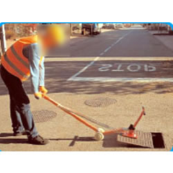■手動マンホール蓋ネオジム磁石吸着開閉器300Kg/品番 M2916MG-300KG マグネット式マンホール開閉器とは、最大能力300kgの強力な18個のネオジウム磁石(ネオジウム製マグネット)の力でマンホールに吸着し、持ち上げるだけでマンホールの蓋を容易に開けることのできる機器です。 マンホールの蓋が鉄製など磁石が効くものであれば、マンホールの形状は問わず、どんな形のマンホールにも使用でき、ベース下のバーを伸ばせば、蝶番式のマンホール蓋も容易に開けることができます。(マンホールの蓋が強く固着しているなどの場合は開けられないこともあります。その場合はマンホール蓋昇降リフターをご利用ください。) さらに、マグネット式マンホール開閉器には、合体させるとテコの原理でマンホールの蓋を楽々持ち上げることができるオプション品「車輪付き折り畳み式レバー」があります。 車輪付き折り畳み式レバーを利用すると、テコの力でマンホールの蓋を開けることができ、そのままレバーに付いている車輪でマンホールの蓋を移動することもできるので、腰に負担がかかりません。 また、磁石の効く鉄製の蓋であれば、形状に制限されることなく使用できるので、側溝や排水溝の蓋として使われているグレーチングなども、腰を屈めることなく持ち上げて簡単に開けることができます。 ●強力なネオジウム磁石18個でしっかり吸着!最大持ち上げ能力300kg ●様々な形状のマンホールに対応できます。 ●車両付きレバー(M2916MF-450KG)と合わせて使用すれば、テコの力で腰に負担をかけません。 ●簡単操作のため誰でも楽々と扱えます。 ●マグネット式マンホール開閉器本体のサイズは25.5cm×55~91cmとコンパクトで、重量は7kgと軽量 持ち運びも便利!