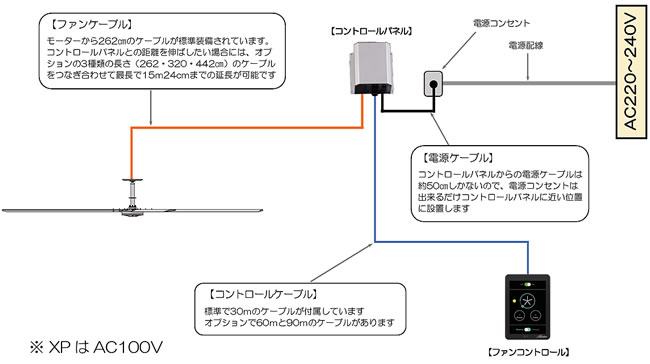 大型シーリングファン(天井扇)羽径213cmAC100V