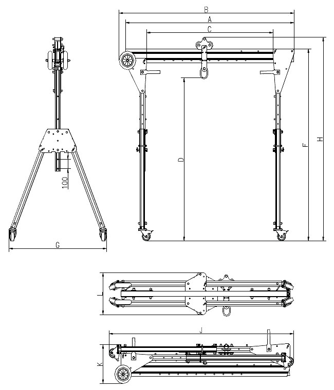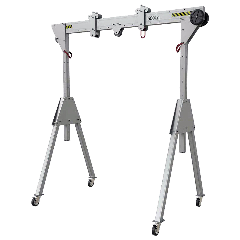 ●ポータブルで簡単に組立可能な折りたたみ式アルミ門型クレーン。便利で迅速な組立が可能です。