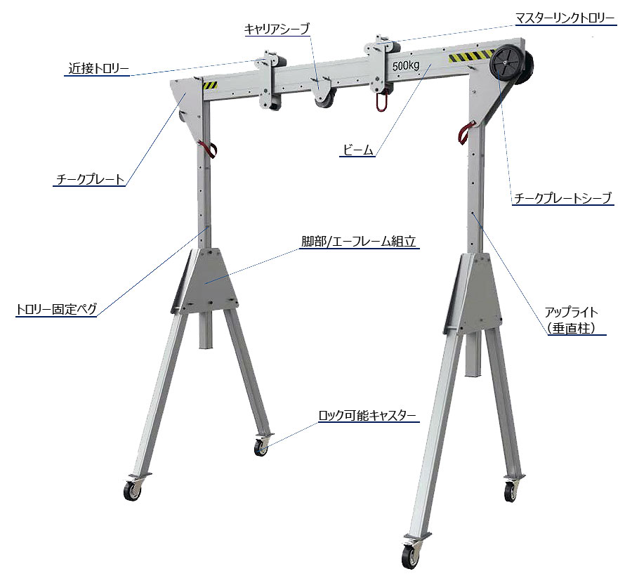 | 折りたたみ式アルミ門型クレーン(500kg)/ 品番 M3248AL-S20PRG-500KG |