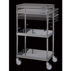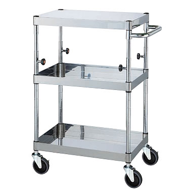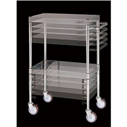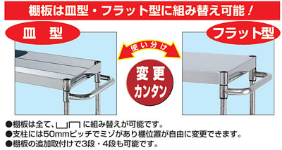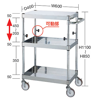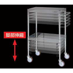 | ステンレスワゴン高さ調整タイプ 高さ725~975mmの範囲で任意の高さに調整可能 高さ850~1100mmの範囲で任意の高さに調整可能 中棚:50mmピッチで段替え可能 ![]() ■棚板断面図 ![]() ■下部昇降タイプ ![]() ■上部伸縮 ![]() ![]() ■タイプ