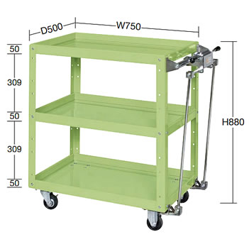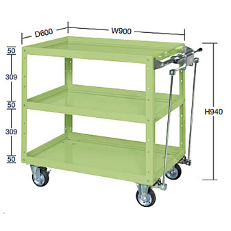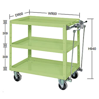 ハンドブレーキ付きワゴン台車H880×W600×D400(グリーン75φゴム車) 品番 M350SWA-608HBS 価格は下記をご覧ください |