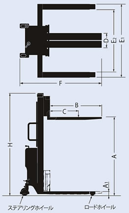 最大揚高 2500mm のWマストタイプもご用意。