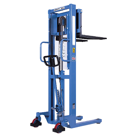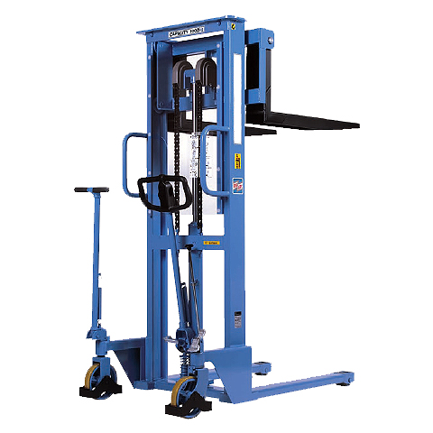 | 高い位置での出し入れに最適なフォークリフター 最高位1800mmの高揚程タイプと、2500mmのWタイプがございます。 ![]() ■特長 ●全機種キャスターカバーを標準装備。 ![]() ●強力な足踏みパーキングブレーキ付き。 ●安全性重視の自動積荷チェックバルブ装置内蔵。 ●環境に配慮した無鉛塗装。 ●軽くてクリーンな樹脂製スプロケットカバーを採用。 ![]() ●小型、軽量だから小回り抜群。 ●早揚り装置 早揚りマジックペダルを踏むとリフト上昇スピードが3倍にアップ。作業効率を高めます。(無負荷時) ![]() ■タイプ