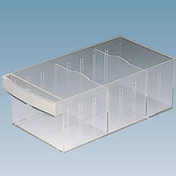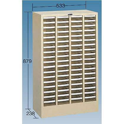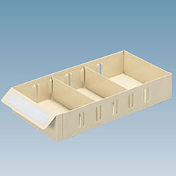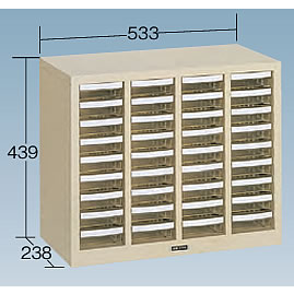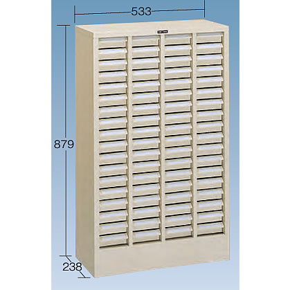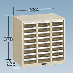 多品種、少量の収納・管理に最適の軽量・エコノミータイプ。![]() 本体:スチール製(ライトグレー) 引出しは透明プラスチック製(PS:ポリスチレン)で浅型・深型の2種類。 各引出しは手前斜め上に引き抜いて頂くと持ち運ぶ事ができます。 (各引出しを、元に戻す際は、手前斜め上から、差し込んでください)。 仕切板各2枚付で収納物がまざりません。 引出しの仕切りは25mm間隔で区切ることができ、小物部品の収納に便利です。 見出し紙付 ■引出しタイプ