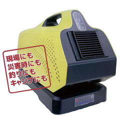 コンパクト&ハイパワーな性能に大容量バッテリーをセットしたあらゆるシーンで快適を提供するポータブルクーラーです。![]() ■特長 海・山・川のキャンプや釣り、災害時などあらゆるシーンで活躍するスタイリッシュなポータブル電源はバッテリーで約4時間駆動し、快適をお届けします。 温度調節機能や3段階ファン、リモコンを標準装備。 バッテリー部分にはUSB出力端子がついているのでスマートフォンの充電も可能です。 温度が見やすい液晶パネル付き。 ![]() ●ファンの状態がわかりやすく直感的な操作が可能な液晶パネル ![]() ●ポータブルクーラーとバッテリーは金属コネクターでしっかり接続。 ![]() ●バッテリー部はUSB出力端子付き。スマホの充電も可能。 ![]() ■仕様