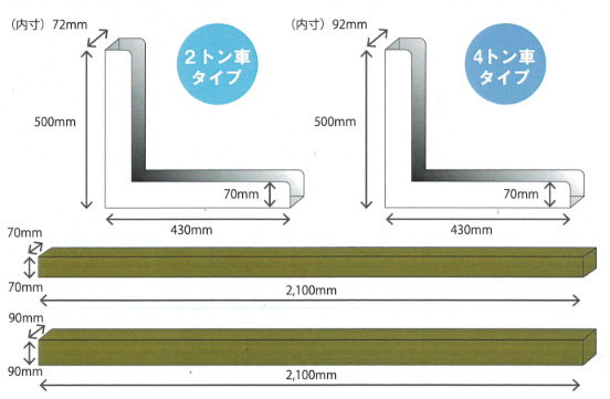 長尺物を効率よく運搬!![]() ■製品概要 スタンションとは、長尺物を運ぶトラックによく見られる部品で、荷台に取り付けた棒によって長尺物を支えながら運搬します。 スタンションを使用するには、荷台に差し込み穴を空ける架装を行う必要があり、費用も高額です。 高額な架装や大掛かりな機器を使用せずに、スタンションと同等の効果を発揮できるのが「長尺物運搬保管用L型バー」です。 ![]() ■使用イメージ ![]() ■タイプ ![]() ■仕様