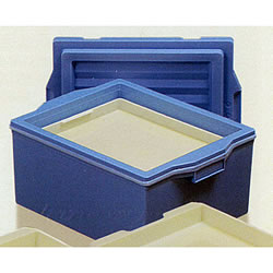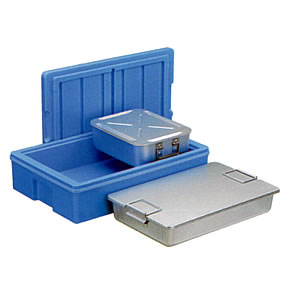 ※トレーは、トレー同士でのみ積み重ねできます。 ●耐用年数について お客様のご使用条件により変わってきますので耐用年数は設定されておりません。 コンテナは、長期間の使用に際し、劣化現象(変形・表面の変色・欠け・接着部の剥がれなど)が現れます。 特に欠け・接着部の剥がれはケガの原因となったり、水などが浸入した場合、カビ発生などの原因となりますので、劣化現象が現れた場合は使用しないで下さい。 ●洗浄について 洗浄は水またはぬるま湯(60℃以下)で、洗剤は中性洗剤をご使用ください。 たわしや磨き粉等は傷が付いたり。表層剥離・変色の原因になることがあります。 スチームによる洗浄は行なわないでください。容器変形・変色の原因となります。 ●乾燥、保管 衛生上、洗浄後はよく乾燥させてからご使用ください。 高温(80℃以上)での乾燥はおやめください。容器変形・変色の原因となります。 乾燥炉・温蔵庫・滅菌庫・殺菌庫などをご使用の際は熱風が直接当たる所には置かないでください。 高温(80℃)になり容器変形・変色の原因となります。 保管は、直射日光を避けてください。断熱効果が低下する原因となります。 |