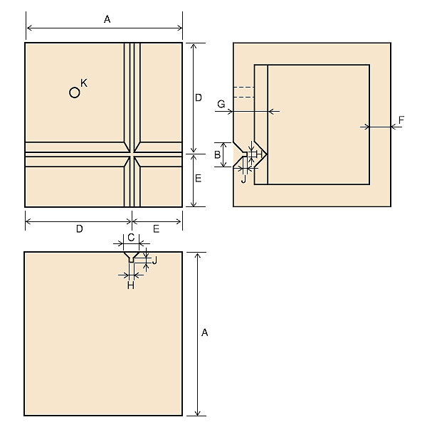 | ■特長 ●平行線、直角線およびV溝を利用して45°線の罫書等または治具等に使用できます。 ●V面は90°を形成しています。 ●完全熱処理の後、精密研磨仕上げを 施しています。 ●V面を利用し、丸棒等の罫書台として使用できます。 ●素材:鋳鉄 ■寸法図 A精度:±(5+L/50) μm L:呼寸法 ![]() ■仕様
