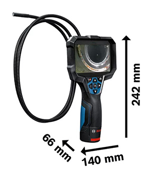 | M471G5-27CBは、冷暖房機器の設置工事や配管工事、電気工事、自動車の整備を行う場合に威力を発揮します。 エルゴノミクスデザインを採用し、1280 x 720 pxの鮮明な高解像画像を表示する大型の5インチモニターも装備しているため、パイプやダクトなど、目が届きにくい場所も効果的に調査できます。 カメラヘッドがどの方向を向いていても実際の上下に合わせて画像を調整するAutoUp機能により、上下の空間方向を容易に把握することができます。 堅牢性に優れており、過酷な現場で粉塵や水がかっても耐えられるように設計されています。 カメラヘッドはIP67に対応しており、粉塵や水に短時間浸しても影響を受けることはなく、ツール自体はIP54相当の優れた防塵・防水性能を備えています。 ![]() ■機能と特徴 ●ディスプレイサイズ 5” ●実際の上下に合わせて画像を調整するAutoUp機能 ●カメラヘッド直径 8.3mm ●カメラケーブルの全長 150cm ■高解像カメラと実際の上下に合わせて画像を調整する自動表示機能により、確実に調査・記録可能 ●1280 x 720 pxの鮮明な高解像画像を表示する大型の5インチモニター ●実際の上下に合わせて調整するAutoUp機能により、上下の空間方向を容易に把握可能 ●IP規格の優れた防塵・防水性能を備え、過酷な現場にも対応可能 ■機器と用途 このスコープは、分電盤やパイプの内部、壁裏の空洞部分の調査をはじめとした様々な専門的な用途、さらに油圧システムや自動車用途にも適しています。 ![]() ![]() ![]() ![]() ■追加情報 M471G5-27CBで撮影した写真や動画は、USB-C(R)ケーブルやマイクロSDカードを使用して簡単に転送することができます。 ■寸法図 ![]() ■仕様