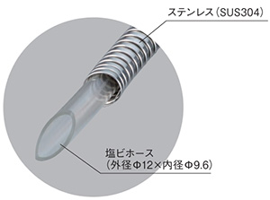 〈!〉ご注意 ●蛇腹ホースの上を車で通過したり、重量物を載せないようご注意ください。ホースが潰れて変形すると、元の形状に戻すことができません。 ●一次側ホースは塩ビホース(1m)となっております。外径Φ20×内径Φ15 ![]() |
