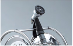 | ステンレス 蛇腹ホース採用。 ねじれグセがつかない、従来の塩ビホースとは違う 滑らかな巻き取り・引き出しを実現。 ![]() ![]() ■特長 ●樹脂製ボディにはないオールステンレスの高級感。ステンレスの輝きが上質な印象を与えます。 ●ねじれグセがなく、滑らかな巻き取り・引き出し 蛇腹構造で伸縮するので、スルスルとしなやかに巻けます。 ●錆びにくく、ベタつかない 泥などの汚れも、水で流せばスッキリ綺麗になります。 ●折れ・潰れによる水量変化がない ホース内を水が流れる音がハッキリ聞こえます。 ●コーナーや車のタイヤで引っかからない 離れた場所でも扱いが楽々! ●穴あきがない優れた耐久性 全長がステンレスで覆われているので内部ホースを保護 ■LN-3型レバーノズル 水の出方を用途に合わせた7パターンか ら選んで使えます。 ![]() ![]() ■「コロコロガイド」が 左右に転がり、ホースに 手をそえずに巻取り可能。 簡単な構造で機械的なトラブルの心配がなく、万一、ホースが重なる場合もガイドローラーを軽く動かす ことで巻乱れを解消します。 ![]() ■ノズルをスッキリ収納! 使用後、本体持手部にレバーノズル が引掛けられます。 ![]() ■寸法図 ![]() ■仕様