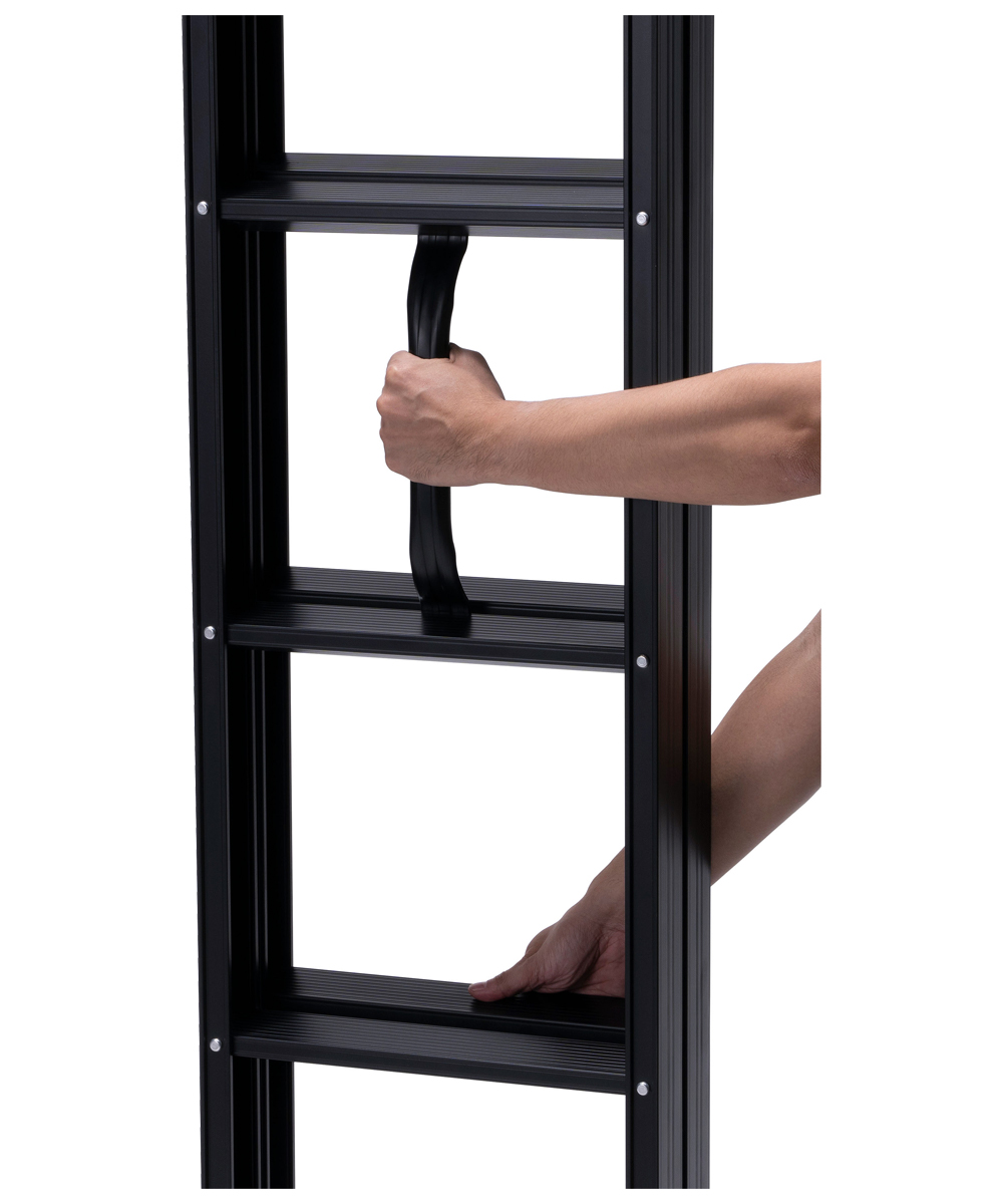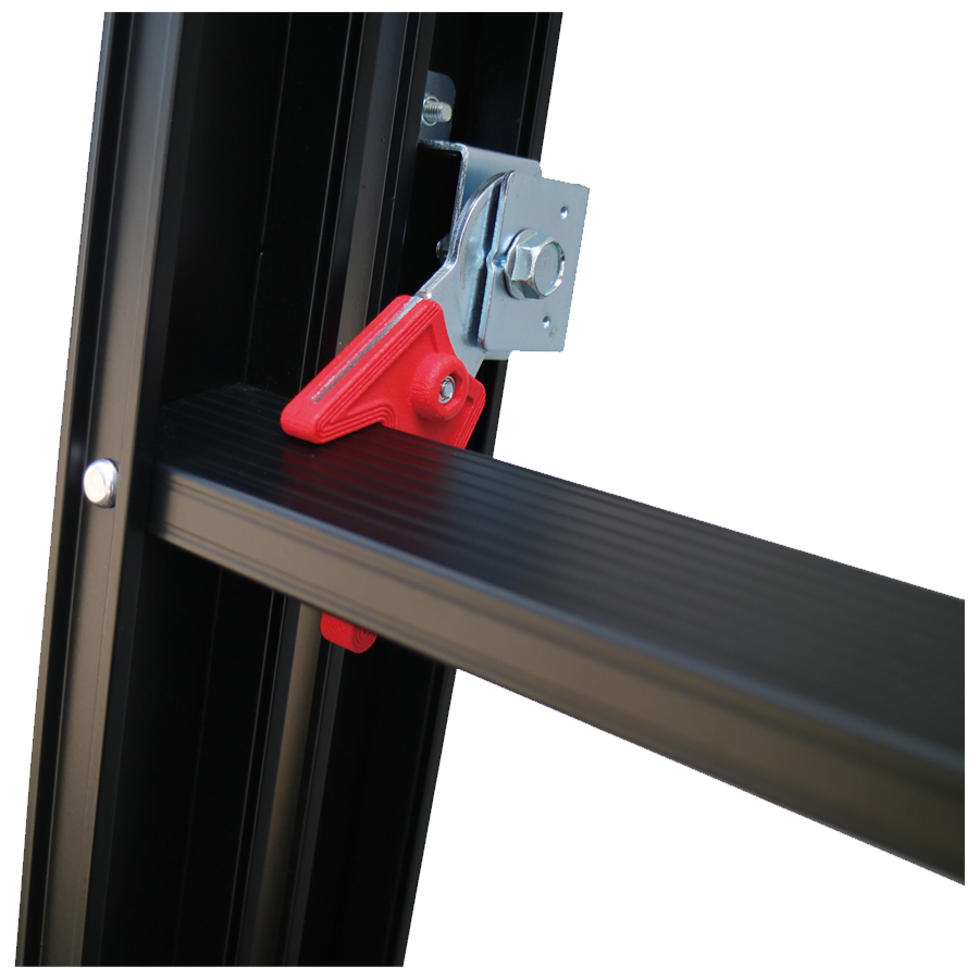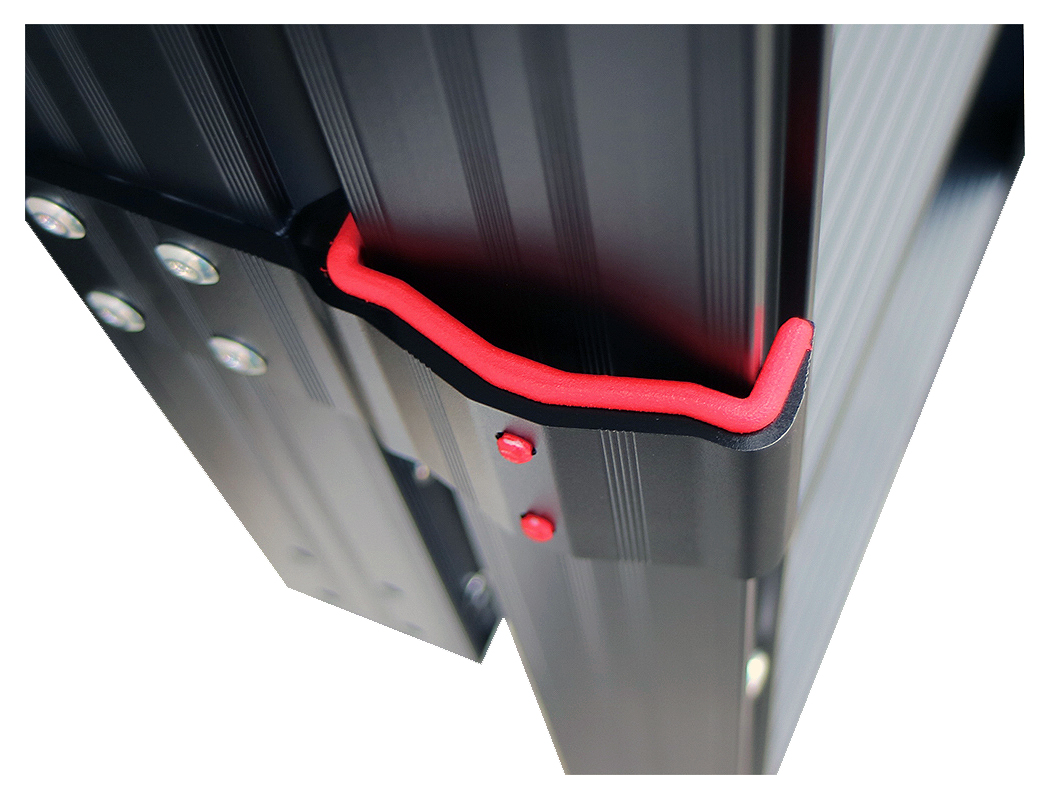 | ■特長 ●メーカー従来のはしごに比べても軽量で、収納時の厚さも130mmと運搬や保管がしやすいはしごです ●上はしごを手で上げ下げするだけの簡単な操作で使用できます ![]() ●表面を傷付けないため、赤色のスライドガイド/ロックカバーを装備。 ![]() ■寸法図 ![]() ![]() ■仕様