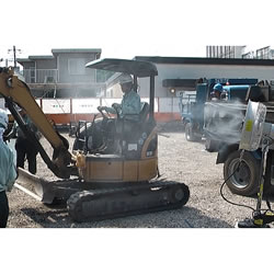 | 独自の大型遠心プレートでより細かいミストを発生 整流板付大型ファンによりミストをより遠くまで噴霧可能 ノズル不要、タンクガード、一点吊りフック、大型車輪 ハードプロユースに適した遠心分離式ミストファン ![]() ■現場での熱中症対策に ●ミスト噴霧量をバルブで調節可能 ●56Lの大型水タンクで最大8.0h(50Hz)/5.6h(60Hz)の連続運転が可能 ●ミスト飛距離最大11m ●どこでも気軽に使用可。単相100V ■こんなお悩みをお持ちではありませんか? ●建設現場ではエアコンの設置が出来ないので、十分な猛暑対策が出来ず困っている。 ●来場者に涼しく快適に過ごしていただくため、冷却効果のある製品を活用したい。 ●工場内の室温上昇を防ぐのに扇風機を使っているが熱風しか来ないので体温を冷やす効果がない ●作業現場の暑さ対策に今以上に必要性を感じ、ミスト製品の導入を検討している。 ●ノズル式のミストを使っているが、ノズルの目詰まりが多いので困っている。 ●従来品ではミストの水分が多く、作業服や資材を濡らしてしまうので他の方法を検討している。 ●スポットクーラーでは部分的な冷却しかできないので、広範囲に使える製品を探している。 ●屋外の冷房設備は電気代が高いので節約したい。環境に良くないので改善したい。 ■大型遠心プレート 独自開発の遠心プレートを採用より細かなミスト粒子を実現しました。 ■風量調整機能 現場や使用用途に合わせて3段階の風量切替が可能です。 ![]() ■自動首振り機能 首振り角度60°でより広範囲にミスト噴霧が可能です。 ![]() ■一点吊りフック 現場での積み下ろしが容易です。 ![]() ■ミスト可変バルブ ミストの噴霧量をバルブで調整可能です。 ![]() ■大型車輪付き 後輪は悪路にも強いφ200の大型車輪を採用 前輪は移動も容易でブレーキ付きのキャスター仕様 ■大型水タンク56L 満水状態で50Hz地域で約8.0時間 60Hz地域で約5.6時間の連続運転が可能です。 ■水タンクガード 外部の衝撃からタンクを守り破損などを防ぎます。 ■渇水センサー付き水中ポンプASY ![]() ■利用シーン・用途 ●工事現場や長時間の野外作業時の熱中症対策 炎天下で作業を行う際に作業員の熱中症対策に。 ![]() ●屋内の仕事場や倉庫・工場での高温対策 作業場の対人用冷房、室内の高温防止対策に。 ![]() ●商業施設の野外やイベントでの暑さ対策 夏場のイベント会場・施設等での来場者への熱中症予防対策に。 ![]() ●スポーツ観戦者・関係者への暑さ対策 観戦席や休憩所の気温を下げるのに効果的。屋外の暑い場所の冷房・冷却に。 ![]() ■仕様