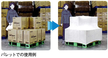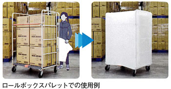 | 繰り返し使えてゴミが減ることで、エコにつながります。 装着は簡単で短時間、あらゆる形に対応します。 ![]() ■特徴 ●特許出願中 ●ロールボックスパレットやパレット上の荷物などに被せるだけの荷崩れ防止カバーです。 ●無縫製で、縦・横に伸縮性抜群。 ●経編にすることでほつれにくく、糸くずが発生しづらいです。 ●繰り返し使用できるので、ゴミの削減につながり環境に優しい製品です。 ●振動試験実施済 ※荷崩れ防止カバーをおよそ4回以上使用することでストレッチフィルムより廃棄焼却時のCO2排出量の削減に貢献します。 ■試験方法 国内のトラック輸送を想定してJIS Z 0200 跳ね上がり振動試験レベル 3 を実施 ■振動試験の区分 区分:レベル3 区分目安:短距離の国内輸送(200km以下)で、特定のハザードがない。 ■跳ね上がり振動試験の条件(正弦波対数掃引振動試験) 区分:レベル3 試験時間 min:10 加速度 m/s2:7 周波数範囲 Hz:3~100 掃引速度 オクターブ/min:1/2 ※JISとは、日本産業規格(Japanese Industrial Standards)の略で、産業製品に関する規格や測定方法などが定められた日本の国家規格。 ■荷崩れ防止カバーを予めパレットの外周にセットしておき、荷物を載せた後に引き上げると簡単に装着できます。 ![]() ![]() ![]() ■寸法図 ![]() ■仕様
