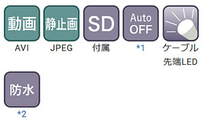 *4 16GBまでのSDカードが使用可能。 1GBあたりJPEG形式静止画を約900枚、またはAVI方式動画を約15分間記録可能です。 ■オプション