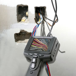 | 3.5インチの見やすいカラー液晶を搭載したスコープカメラ。 製品リニューアルでHDMI出力機能とイヤホンマイクの音声記録に対応。 ※ケーブルは付属していません。専用オプションを別途お求めください。 ![]() ■特長 ●IP57準拠の防水カメラプローブを採用。コネクタ部以外は水がかかっても安心です。 ●ビデオ出力付き。付属のHDMIケーブルを使用してテレビ画面に画像を表示可能です。 ●測定した画像をSDカードに保存することが可能。 本体から呼び出しできるほか、SDカードやUSBケーブルを使用してパソコンへの出力も可能。 ●オートパワーオフ機能付き。解除可能。 ●LED付きカメラプローブは輝度調整可能。暗所での作業に便利。 ![]() *1 5~30分、解除可 *2 ケーブル部 IP57準拠 ![]() ![]() ![]() ![]() ■使用イメージ ※ケーブルは付属していません。専用オプションを別途お求めください。 ![]() ■ケース収納例 ![]() ■各部名称