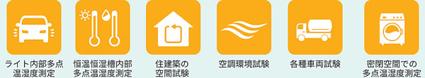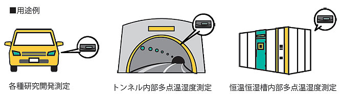 | 小型 多点測定 アナログ入力 SDカード記録 温湿度センサケーブル ![]() ![]() ■特長 ●最大16chの同時測定 各種温湿度センサケーブル、各種熱電対、アナログセンサを混在して同時に最大16chの多点測定が可能です。 ●SDカードで大容量記録 ロガーのメモリはSDカードで行いますので簡単に大容量のデータを取り扱うことができます。 ●小型軽量ロガーでどこでも測定 省スペースでも多点測定が可能な持ち運びサイズです。 136×22mmのロガーで多点測定ができるので配線が困難な場所にも役立ちます。 ●有線接続でリアルタイムモニタリング PCと有線接続することでメモリ容量や外部電源残量を気にせずにリアルタイムモニタリング、記録も可能です。 ●測定環境に応じたセンサの選択 各種外付けセンサケーブルを接続することで狭小空間や結露環境など測定環境に応じたセンサを選択することが可能です。 さらにアナログ入力も可能ですので各種熱電対、任意のアナログセンサも接続することが可能です。 SDカード記録による長時間測定、測定環境に応じたセンサを接続することが可能です。 センサは極小サイズセンサ、耐環境性のあるセンサ、熱電対各種タイプが接続可能です。 ![]() ![]() ●PCとのUSB接続によるリアルタイムでの観測・記録 ●単独でSDメモリーカードへの長期間記録 ●Sensirion社製センサ、IST社製センサ、熱電対、アナログセンサの混在が可能 ●センサ入力コネクタはmicroUSBケーブルで着脱しやすい設計 ![]() ■測定環境に応じた選べる温湿度センサ 各種外付けセンサケーブルを接続することで狭小空間や結露環境など測定環境に応じたセンサを選択することが可能です。 さらにアナログ入力も可能ですので各種熱電対、任意のアナログセンサも接続することが可能です。 ![]() ![]() ■標準タイプ ●メンブレンフィルタ付超小型 高湿度対応センサ ●1.5%の高精度を保持 ●低湿度環境でも安定した測定 ![]() ■フレキシブルタイプ ●性能をそのままに、厚み200μmのフレキシブル基板へ搭載 ●センサ部分でも1mm厚のため、狭小空間や湾曲する空間でも ●フレキシブルセンサ部分とケーブルの一体化 ●フレキシブルセンサ部分の着脱が可能 ●結露環境でも測定が可能なセンサ ●焼結金属フィルタ搭載で結露による ●故障を軽減 耐圧・耐ガス性もあり