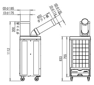 業務用スポットエアコン強力型(冷風1口自動首振り機構付)単相100V 品番 MC6S-25DL-1S 廃番 |