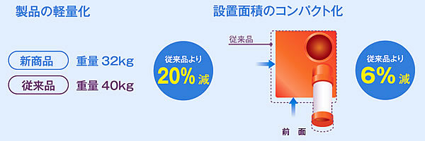 | 高い冷房能力の維持とスリム化を実現しました。 環境にやさしいR32冷媒を採用しています。 全閉式ファンモータを採用しています。 ![]() ■用途 マシンなどへの部分冷却に。 広い場所でのスポット冷房に。 夏場の暑気対策として。 ■注意 スポットエアコンは対人用、対物用です。 部屋全体を冷却するものではありません。 防爆構造ではありません。 ■一歩先の環境対策 環境機器の総合メーカーであり、スポットエアコンのリーディングカンパニーであるスイデンは、環境にやさしく、地球温暖化に与える影響が少ないエコ冷媒をいち早く採用します。 ※スポットエアコンは、2023年1月時点、GWP低減目標の対象機器ではありませんが、R32冷媒(GWP675)の採用により、GWPは従来比1/3となり低減目標を先取りした環境性能を達成しています。 ![]() ■エコ冷媒「R32」とは 冷媒ガスの種類により地球温暖化に与える影響が異なります。 二酸化炭素を基準に温室効果の程度を数値化したものが地球温暖化係数(GWP)になり、この数値が大きいほど温暖化への影響が大きくなります。 広く採用されている冷媒ガス「R410A」がGWP2090に対し、「R32」はGWP675と大きく環境負荷削減に貢献します。 ![]() ■地球温暖化係数(GWP)低減目標 フロン排出抑制法に基づく「指定製品制度」は、フロン類使用製品の低GWP・ノンフロン化を進めるため、製品区分毎に、地球温暖化係数(GWP)低減目標値が定められております。 スポットエアコンは、現在GWP低減目標の指定製品外で対象となっておりませんが、家庭用エアコンディショナーはGWP750以下とする目標値が設定されています。※2023年1月現在 ■スリム化を実現 高い冷房能力はそのままで本体のスリム化を実現しました! ※重量:MC6S-25DL-1TSの場合 ![]() ■自動首振り装置 広範囲に涼風を送ります。 ダクトの正面を中心に左右45℃に首振りします。 ![]() ■ホコリに強い全閉モータ採用 モータ周囲の空気がモータ内に流入しない構造なので、ホコリの多い現場でも使用できます。 ![]() ■ミニドレンタンク 熱交換器一体型の最新機構。ドレン水量が激減! 半透明のドレンタンクなのでドレン残量が一目でわかります。 ![]() ■便利な排水機能 ドレンタンクを取出し、ドレン口にホースを差し込むと直接排水することができます。 ※ホースは、内径φ16mmのものをご用意ください。 ![]() ■冷風の延長、室外排気 冷風ファン・排気ファンにシロッコファンを採用する事で ダクトを延長し冷風を遠く離れた人へ運び、排気熱を室外に排気できます。 ※別売りの延長冷風ダクト、延長排気ダクトが必要です。 ![]() ■タイプ