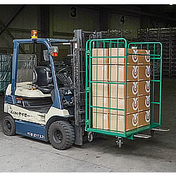 | 荷物の搬送や保管に便利なハイテナーが安全にフォークリフトで運べるようになりました。 運用効率UP 滑落事故を低減 ![]() ■フォークリフトで効率化 荷物を積んだ状態でも安全にフォークリフトで搬送できます。 トラックへの積み降ろしや、構内の運搬を効率化 ![]() ■滑落防止ガイド付きで安心 滑落防止のガイドが不意の荷崩れを防止します。 またフォークによるキャスターの破損も低減。 安心してご使用頂けます。 ![]() ■仕様