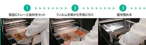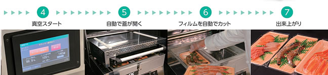 | 密着真空包装は、新しい陳列方法で売場の注目度アップ、また、食品ロスの削減に貢献します。 ●クラス最小・低価格 ●自動フィルムカット付 ●2パック同時可能 ●簡単なセッティング(フィルム交換、型交換) ●タッチパネルによる簡単な操作性 ●USBメモリ対応(HACCPなどに活用) ●言語切換外国語対応 ![]() ■密着真空包装で生鮮食品を効率的に、より安全に包装 ●生鮮食品の形を崩さず美しく包装 ●肉や魚等のドリップが出にくい ●酸化、変色、乾燥防止で鮮度保持 ●廃棄処理が減り、食品ロスを削減 ●干物や冷凍品等、先のとがったものでもピンホールが起こりにくい ■簡単なセッティング フィルム交換は蓋を上げるだけでセット可能 ●型交換も簡単! 交換に要する時間は1分以内 ●液晶カラータッチパネルで簡単操作、漢字にも対応 ●操作ログ情報管理に USBメモリを採用し利便性向上HACCPにも対応 ■見た目の美しさを維持 ●密着包装なので食品の美しさはそのままに ●思わず手に取りたくなる状態で 陳列が可能に ④食品ロス削減に貢献 ●密着包装によりドリップが出にくく通常保存よりも鮮度がキープできる ●廃棄処理などが減って食品ロス削減につながる ■あらゆる包装物に対応可能 ●串などの鋭利なものでもフィルムが破れない ●固いものから柔らかいものまであらゆる包装物に対応可能 ●型なしの密着包装も可能です 余りそうな商品をすぐにスキンパックすることで長期間見た目がよいまま陳列することが可能です (冷凍販売にも対応可能) ■トレー台ユニット&専用トレー ![]() ![]() ■密着真空包装の流れ ![]() ![]() ■密着真空包装例 ![]() ![]() ■寸法図 ![]() ■仕様
