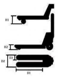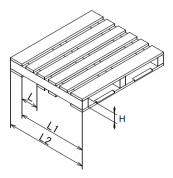 ■ご使用いただけるパレット ①単面形 ・H:最低位+10mm以上のものをご使用下さい。 ![]() ②片面使用形 ・H:最低位+10mm以上のものをご使用下さい。 ・L:170mm以上のものをご使用下さい。 ・L1、L2が下記のどちらかの寸法に適するものをご使用下さい。 L1:B寸法と同じ寸法のもの L2:A寸法以下のもの ![]() ③両面使用形 ・H:最低位+10mm以上のものをご使用下さい。 ・L2:A寸法以下のもの ![]() |