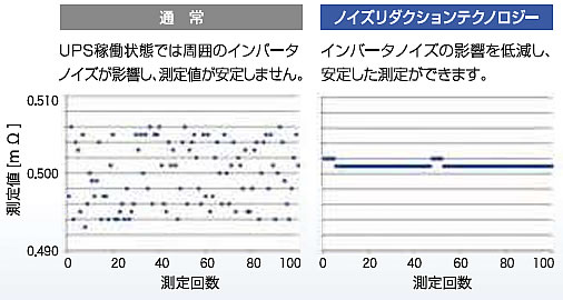 | 作業の後戻りをゼロにする、測定記録ガイド搭載 音声ガイドに従うだけで、測定・記録・データ整理が完了 ![]() ![]() ■測定記録音声ガイドでUPSや鉛蓄電池の劣化診断を効率化 ●測定記録をナビ音声ガイド ●データ管理を効率化プロファイル ●測定から記録まで最速2秒