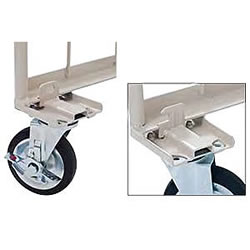 | 従来型に比べて大幅な軽量化を実現 ワンタッチ方式を採用し作業効率向上 抜群の耐久性・防錆を実現 ![]() ■ロックバー ![]() ■ワンタッチ方式採用 ![]() ■高強度フレーム ![]() ■保管時には簡単に折りたため、スペースを取りません。 (注)折りたたんだ状態での移動は転倒の恐れがあります。 ![]() ■キャスター取付 自社開発による合成ゴム車輪により、静かで滑らかな走行を実現しました。 また差込仕様にしボルト数の半減に成功。 ※ウレタン車輪、低温仕様については別途承ります。 ![]() ■簡単に出し入れが可能な両端回転式サイドバーを採用。 また安全性に配慮し、サイドバーを本体と同色から黄色とし、目視で危険を回避できます。 ![]() ■キャスター仕様 ![]() ■仕様