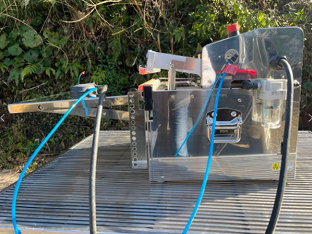 従来モデルで採用しているエアシリンダー駆動方式では、エアコンプレッサーが作る圧縮エアの一部が水滴となり、