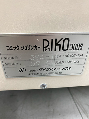 | 中古コミックシュリンカー/品番 PIKO300S 問い合わせ番号 Z-01013-4 |
