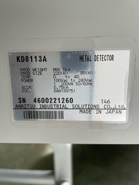 中古アンリツ金属探知機(通過高さ80mm×通過幅300mm)/品番 KD8113A