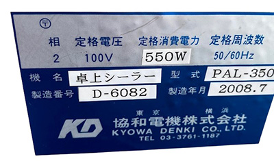中古協和電機卓上型シュリンク包装機/品番 PAL-350