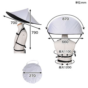 | 超軽量、コンパクトに折りたためて持たずに差せるハンズフリー日傘 UVを99.9%カットし、両手も自由になるハンズフリー日傘の超軽量バージョンです。 両手を使う屋外作業で日差しを防いでくれるハンズフリー日傘。 紫外線保護指数(UPF)も最高指数50+で紫外線から守ってくれて、 日陰ができるので、タブレットやスマホの画面も見やすくなります。 しかもコンパクトに折りたためるので、持ち運びしやすくなりました。 いざという時のために、携帯しておくことができます。 ![]() ■99.9%UVカット!軽量コンパクトな持たない日傘 手ぶらで差せる傘となると、リュックに固定する物や帽子タイプが多いのですが、 【超コンパクト収納 折りたたみ式ハンズフリー日傘】は、リュックなど他のアイテムは不要、身体に固定します。 とっても軽いので、ほとんど重さは気になりません。 そしてUVカット率99.9%以上、紫外線保護指数(UPF)も最高指数50+と日傘に特化しています。 どうしても傘を持つことができない現場作業や農作業など。 軽量なので、カバンなどに入れて持ち運ぶことができます。 ![]() ■農作業や釣りなど両手を空けたい場面で活躍 現場作業以外にも農作業や写真撮影など、両手を使う作業を日傘を差しながら行うことができます。 ![]() ■装着方法 折りたたみ式ハンズフリー日傘は、開いて各部をバックルで固定して装着します。 装着方法は動画でご確認ください。 ![]() ■折りたたみ時 ![]() ■サイズ ![]() ■仕様