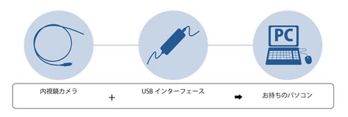 ■オプション <USBインターフェース M1129KT-USB18XS/M1129LT-USBW2S> M1129KT-USB18XSは専用のモニタを使わず、Windowsベースのパソコン画面に直接内視鏡画像を表示させる内視鏡用インターフェイスです。内視鏡の駆動電源はパソコンのUSB電源を使うので、内視鏡用のバッテリーを持ち歩く必要がありません。 M1129LT-USBW2Sは超解像適用により、画素数800×800相当の映像で、内視鏡の映像をご覧いただけます。 ●お使いのPCに接続可能 ●画像保存(キャプチャー)機能搭載 ●オートゲイン/マニュアルゲイン切り替え可能 ●LED照明の調光機能搭載 ・先端可動型工業用内視鏡も接続可能 ●センサー本来の解像度をインターフェース内で倍増 ( 400×400 → 800×800 ) させます。 このため、センサー(カメラ)はそのままでインターフェースのみの変更で解像度を増やすことを実現。(M1129LT-USBW2S) ●今まで解像度不足で見えなかった箇所が拡大され、より鮮明に見えるようになります。(M1129LT-USBW2S) ●PC内に保存されるキャプチャ画像や動画ファイルも同一の方法により拡大された状態で保存されます。(M1129LT-USBW2S) ![]() ![]()