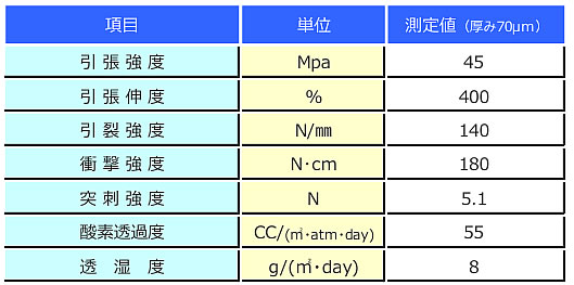 ■物性 ![]() ※値は測定値の一例であり保証値ではありません。 ■規格袋
