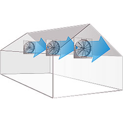 洗える“ウォッシャブルACモータ“で畜舎のオールアウト洗浄におすすめ![]() ■特長 ●防じん・防水性能IP56相当※1 ・ほこり等に対する保護と、いかなる方向からの強い噴流によっても有害な影響を受けない構造 ●順送用途専用品をラインアップし、換気扇※2と比較し省エネを実現 ●モータ軸受にウレアグリースを採用し、高耐久化を実現 ●専用スタンド(別売)と組み合わせる事で移動性・設置の自由度UP ●モータ軸水平設置を可能とするつり下げ金具をラインアップ(別売) ●電源ケーブル有効長3m機種 ■1. 順送用途専用品を開発し省エネを実現 順送用途専用品を開発・デュアルゾーンブレード®、専用モータを採用し省エネ。 羽根デュアルゾーンブレード®採用 ![]() ■2. 洗えるモータ“ウォッシャブルACモータ″ 特殊フリンジャ構造により高圧水洗浄が可能。 ※ 水圧2MPa(20kgf/c㎡)以下 防じん・防水性能IP56相当(JIS C4034-5による) ほこり等に対する保護と、いかなる方向からの強い噴流によっても有害な影響を受けない構造 ![]() 3. 高耐食 羽根にはSUS、モータ外郭にアルミダイキャスト、その他主要部品には高耐食めっき鋼板を採用し高耐食性を実現。 4. モータ軸水平設置可能 モータ軸水平つり下げ設置を可能とするつり下げ金具をラインアップ。 つり下げ金具(別売) ダクトの変形を守る補強プレート ![]() 5. 移動性・設置の自由度UP 別売りスタンド(S-100C)を取付けることで、 キャスター付で移動が簡単 ![]() ■換気送風機の効果・メリット 暑熱対策、ヒートレス対策 ・畜舎内に順送タイプを設置し、暑熱対策。 ・家畜へのヒートストレスを防ぎ、エサの摂取量低下、増体重の減少を防ぎます。 ![]() ■外形寸法図 ![]() ■風速分布図(参考値) ![]() ■仕様