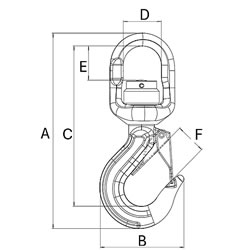 | 1.12ton スイベルフック(ベアリング入)のバリエーション ●とても頑丈なつくりになっています。 ●材質・・・高張力合金鋼 ●安全ラッチ付き ![]() ■寸法図 ![]() ■仕様