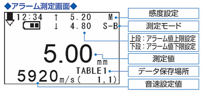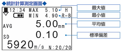| 塗膜下測定など小型ボディに多機能搭載。大容量データメモリー付き厚さ計です。 1/100表示でより細かく正確に。 ボディもブランドカラーのブルーとブラックを基調にリニューアル ![]() ■特長 ①塗膜下の厚さ測定: 探触子を塗装の上から当てるだけで母材の厚さが測定可能 ②データメモリー機能: 最大10,000点のデータを保存でき、簡単にデータ管理が可能。(グループ分けも可能) ③パソコンへのデータ通信機能: USBケーブルを接続して測定データをパソコンに転送が可能。 ④探触子交換可能: 探触子を交換することで、幅広い範囲の測定が可能。 ⑤差分表示、上下限アラーム機能: 入力した基準値と測定値との差を厚さ(mm)と比率(%)で表示。 上下限アラーム値を設定すればブザーにてお知らせ。 ⑥統計処理: データ群毎に最大値、最小値、平均値、標準偏差を演算。 ⑦多用途: 専用測定モードや感度(GAIN)切替機能の搭載で、パイプ、アルミニウム、樹脂等も安定した測定が可能。 ⑧音速メモリー機能: 標準10種類の音速以外に、5種類の音速を自由に登録可能。 ノギス、マイクロメーターとは異なり片面から探触子を当てるだけで非破壊で厚さを計測できます。 ■超音波厚さ計の使用例 ●圧延加工・機械加工・押出成型品の仕上り寸法測定による品質管理 ●金属加工品の仕上げ厚さ検査 ●樹脂材料の各種タンク・容器の製品厚さ検査 ●危険物貯蔵タンク,配管,船体,工場設備などの減肉,腐食検査 ●建設機械の磨耗,減肉検査 ●ボイラー冷却用パイプの腐食検査 ●照明ポール・道路標識ポールの腐食検査 ■ディスプレイ画面 ![]() ![]() ![]() ■仕様