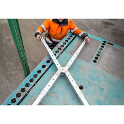 | フレコンバッグをより簡単・効率的に吊り上げるために設計されたクロス吊り天秤です。 高強度アルミニウム製で、自重はわずか13kg。 手で運搬できるほど軽量でありながら、最大2tまでの荷重に対応します。 軽さと強度を兼ね備えた構造により、あらゆる現場で安全かつスムーズな吊り作業を実現します。 ![]() ![]() ■特長 ●アルミ製で軽量・防錆:雪国や海沿いなど腐食環境に最適 ●長さ調整はピンの抜き差しだけ ●荷重がかかるとクロスが開くフリームービング構造 ●2点吊りから8点吊りまで対応 ●折りたたみ式:2tモデルは縮小時わずか1m、輸送にも便利 ●90°までの開角度に対応(クロス天秤シリーズ) ●5tモデルでもわずか35kgの軽量設計 ●アルミ製モデルは2t~18tまでのラインナップ/スチール製モデルは30t~50tに対応しています。 ![]() ●伸縮構造:1.07m~1.67mまで長さを調整可能。用途に応じた吊り設定が可能です。 ●超軽量設計:自重13kg。運搬・設置・手動で位置調整が容易。 ●ビッグバッグ対応:専用フックにより、フレコンバッグを素早く安全に取り付け可能。 ●省スペース:折りたたみ式クロスフレームにより、運搬や保管がスムーズ。 ![]() ■高い安全性と品質 欧州機械指令2006/42/EGおよびEN13155:2021に準拠。 全製品にCEマークが付属しており、以下の厳格な基準をクリアしています。 ●永久変形:規格値の2倍以上 ●破断:3倍以上 ●16,000回荷重サイクル ●使用温度範囲:−35℃~+50℃ ●モジュールハウス・ユニットハウスの吊り上げ ●ボート吊り(スリング・自動フックとの併用) ●コンテナ・フレコンバッグの吊り上げ ●屋根パネル・外壁パネル施工 ●雪国・沿岸・屋外工事など防錆性を求める現場 軽量で輸送性に優れることから、レンタル会社や仮設機材業者への提案も推進していきます。 ![]() ■フック部 ![]() ■寸法図 ![]() ![]() ![]() ![]() ■仕様