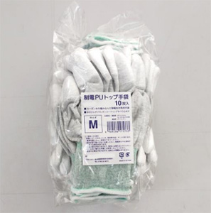 制電PUトップ手袋![]() ![]() ■特長 ●繊維部にはカーボン糸を編み込んでますので静電気対策に適しています。 ●指先のみポリウレタンでコーティングされています。 ●長繊維を使用し、比較的発塵しにくいです。 ●表面漏洩抵抗値(Ω)試験結果:105Ω ■用途 品質管理・精密作業・電子部品組立など ■仕様