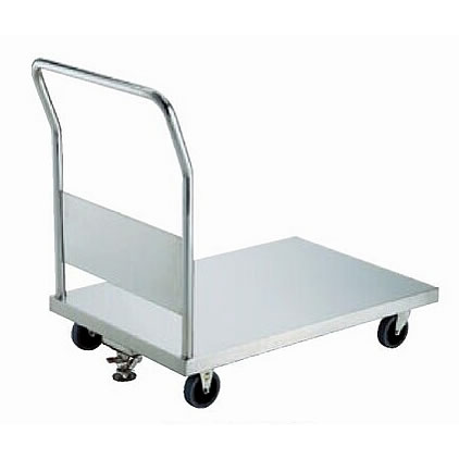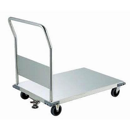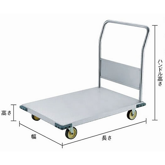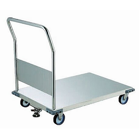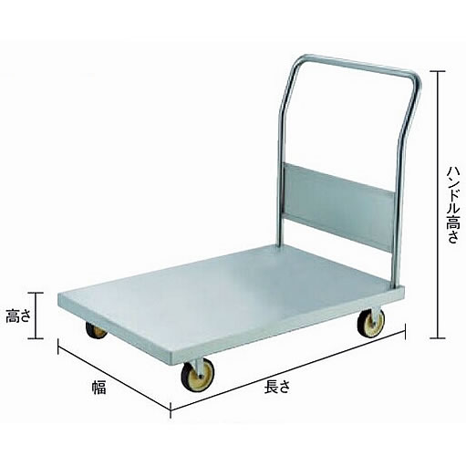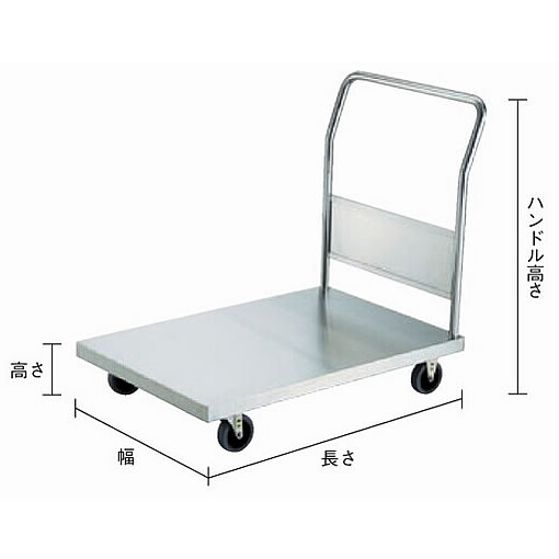 ■材質 ●荷台・ハンドル:ステンレス(SUS304) ●車輪:帯電防止ウレタン ●キャスター金具:ステンレス(SUS304) ●コーナーバンパー:エラストマー製 ■仕様 ●完成品 ●自在キャスター、固定キャスター各2個 ●固定ハンドルタイプ ●車輪:ナイロンウレタン ■仕様