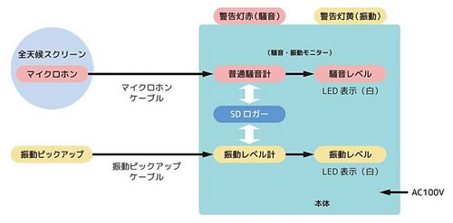 | 【工場やプラント、発電所など事業所での騒音対策に】 工場やプラント、発電所などの事業所では、場内から発生する騒音、例えば室外機などの設備による稼働音、運航するトラックの走行音など操業により発生する騒音を常時監視し警告灯でお知らせ致します。 騒音レベルを規制基準値以下にする抑止効果として、また場内に設置された定点カメラと連動してご使用頂く事で、操業中の騒音抑止としてもご使用頂けます。 設備の異常音の監視の観点では保守や管理にかかるコストを最小化できる1台です。 ![]() 工場や建設工事といった騒音の発生する現場では「生活環境を保全し、国民の健康の保護に資することを目的」とし騒音規制法及び振動規制法を主とした規制が課せられています。 もちろん対象となる騒音源や振動源となる工場や事業場、建設工事現場ではこれらの規制を遵守しながら日々作業をされていらっしゃるとはいえ、それによって被害を受ける周囲の方々からすると、やはり音や振動は感覚的なものですから、近隣住民からのクレームに対応せざるを得ないのが現状のようです。 (騒音・振動レベルモニタ兼レコーダ)はそういった現場の広報係として、騒音・振動値のリアルタイム表示と警告灯による告知によって計測に要する人件費の削減が可能です。 また、レコーダにより日々の測定値が出力可能ですので、近隣住民との問題といった万が一のトラブルにも等価騒音レベルや振動レベル等の物理指標を根拠とした対応が容易になります。 騒音計・振動レベル計共に計量法の規格に準拠しておりますので安心してご使用いただくことができます。 また、お客様のご要望に合わせて機能を絞った低価格品から、無線通信可能・自由な表示レイアウトにアレンジ可能な大型モニタ付属のハイエンドモデルまで各種取り揃えております。 そして、日報や月報に対応したソフトもご用意しております。 ![]() ![]() ■特長 ●騒音計内蔵の低価格モデル。騒音計は検定付も選択可能。 ●設置はきわめて簡単。電源プラグをコンセントに挿し、すぐに測定開始。 ●視認しやすい大型LED搭載。 ●1ヶ月のお任せ測定。データを自動で取り続けます。 10分間毎の騒音データを記録。専用アプリで簡単表示。 ●騒音計は計量法、JIS C 1509-1(クラス2)、JIS C 1516(クラス2)に適合。 ■構成例 ![]() ■専用アプリで日報・月報データを簡単管理 ![]() ■タイプ