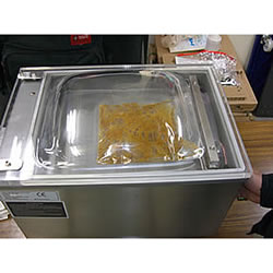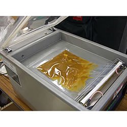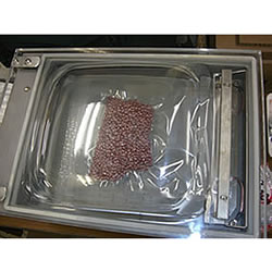 | ■特長 ●三相200Vコンセントと、単相200Vコンセントが選択可能 ![]() ![]() ![]() ●ダブルシールバー(2列)なので、中~大までの袋を4つなど、たくさんパックする時に便利。 ●一度にたくさんパックするとき、または、大きいものもパックするときに便利です。 ※大きいものをパックする(片側シールのみ)の場合、もう片側のシール部分に挟まずご使用いただければそのまま片側シールできます。 ●強力200Vポンプなので、満足のいく完全真空が可能です。 ■使用例 ●サンプル1 乾燥したあずきを真空します。コーヒー豆やあずきを真空保存することにより、いつまでも風味や香を逃さずに保存できます。