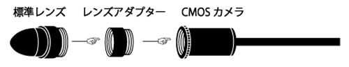 ■オプション 超小型CMOSカラーカメラ用レンズアダプター/品番 M244CM-1547P1A ![]() ●本体付属の標準レンズとレンズアダプターを組み合わせることで、より被写体に近づいてピントを合わせた拡大(マクロ)撮影ができます。 ・レンズアダプターを1つ装着…対象物から13cmまで近づいての撮影が可能 ・レンズアダプターを2つ装着…対象物から7cmまで近づいての撮影が可能 ・レンズアダプターを3つ装着…対象物から5cmまで近づいての撮影が可能 |