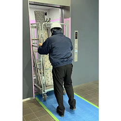 | 足場部材をエレベーターで運搬するのに最適な低床カゴ台車。 底板を下げることで、長さのある物をエレベーターでも運搬できるよう設計しました。 足場踏板(アンチ)であれば最大12枚運搬でき、現在使われているほとんどのエレベーターに台車ごと載せることができます。 1900mmの長物に合わせて開発したカゴ台車は重心が低くバランスが良いので、一人でも安定した運搬が可能です。 また、底板は取り外すことができるので、場所を取らずに保管、運送が可能です。 ![]() ■仕様 ●1800mmの長尺物をそのまま運搬 高さ2mのエレベーターにも台車ごと積載可能 足場踏板(アンチ)最大12枚OK ●一人で楽に運べる安定設計 低重心でバランス抜群。 省力·安全に作業効率 UP ●丈夫で錆びにくい底板 ドブメッキ( 溶融亜鉛メッキ)仕様で耐久性◎。 取り外して省スペース保管も可能 ![]() ![]() ●高さ2Mのエレベーターでも足場踏板(アンチ)を搬入出来ます。 ![]() ![]() ■仕様
