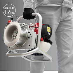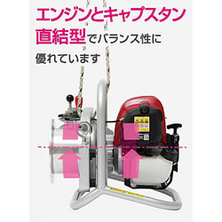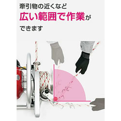| 電源のない所でも作業可能 小型・軽量優れた操作性 持ち運びと作業が安定 ケーブル延線工事 作業ツールの吊上げ 伐倒木の移動に エンジン式なので電源が不要 重心・張力のバランスが良く持ち運びと作業が安定 ![]() ■設置の高さ調整に便利な吊り下げ用ロープ穴 ![]() ![]() ![]() ![]() ![]() ■安全性と作業性に優れた尻手保持装置 ●アクセル連動型 ロープを引くとアクセルが駆動しロープを巻き上げます。 ![]() ●操作が簡単 引く作業と緩める作業の切換えが簡単に行えます。 ![]() ![]() ■小型・軽量 ![]() ■寸法図 ![]() ■仕様